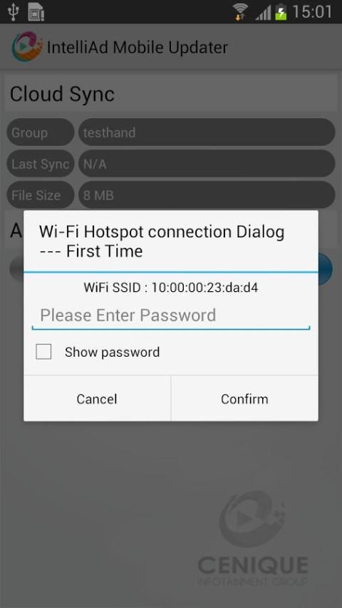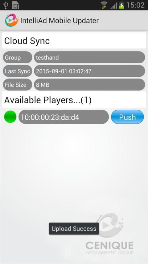 IntelliAd Mobile Update Manager lets you update Cenique “digital signage” playback device without an always on Internet connection. A preconfigured local file on an Android device or downloaded from the IntelliAd Cloud Platform can be uploaded through the device’s own hotspot.