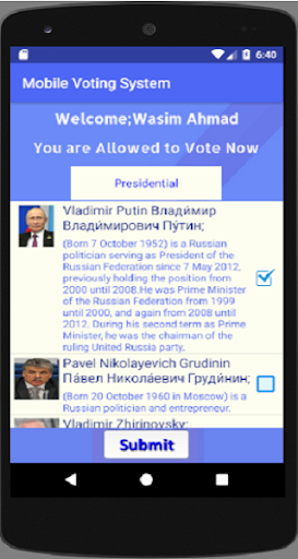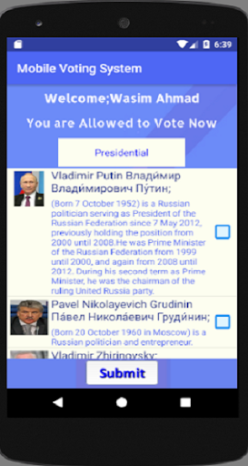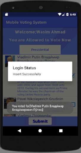 This Voting System Application is About conducting Electoral system by using Mobile Smart Phone.