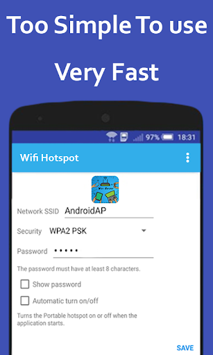 Now turn your phone into portable router and mobile hotspot with this portable internet sharing application. This application is most simple and very easy to use with amazing user interface. With just a single click you can turn your mobile hotspot.