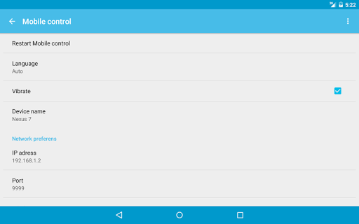 Mobile control realizes next functions: