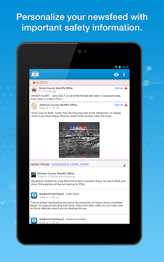 • Quickly view relevant safety news and alerts from your Neighborhoods right on your Newsfeed. No more combing through daily social chatter to find important information!