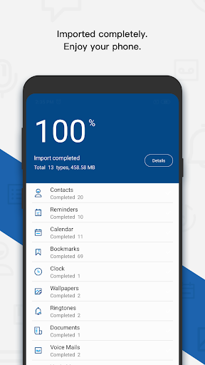 With advanced data analysis technology, it allows transferring data to Android phones much faster than other phone switch Apps.