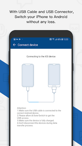 Import iPhone contents to your Android Phone by wire. (iOS device cable and USB connector are necessary)