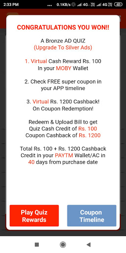 Moby is a CASHBACK App which requires you to answer 2 simple questions to win a coupon of your choice. Shop via the coupon, avail best deals on upto 50% off on the brand sites, Over & above get a 5% -30% Cashback from Moby in your Paytm Wallet or UPI ID A/c in CASH.