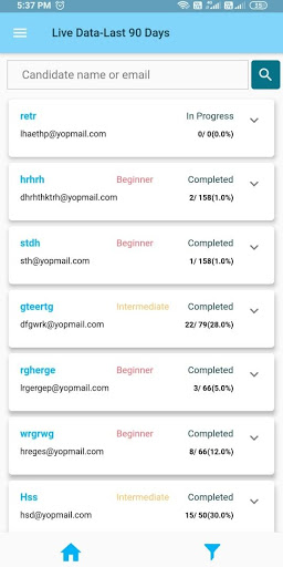 * Live Data - View candidate information, time and date of test attempt, test status, and score
