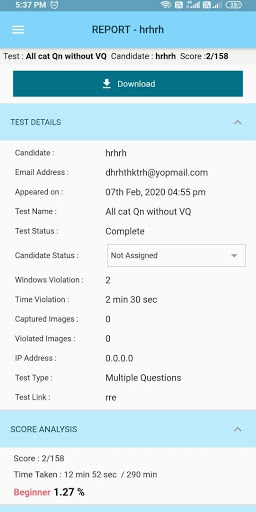 * Proctoring information - Window and Image Violations during the test attempt