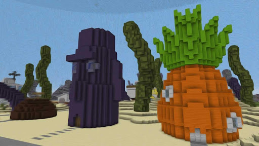 Bikini Bottom is map for MCPE (Minecraft PE) made for the fans of SpongeBob. This application auto-install this map, then you will be able to play a custom map with: SpongeBob's house, workplace and City Mall.
