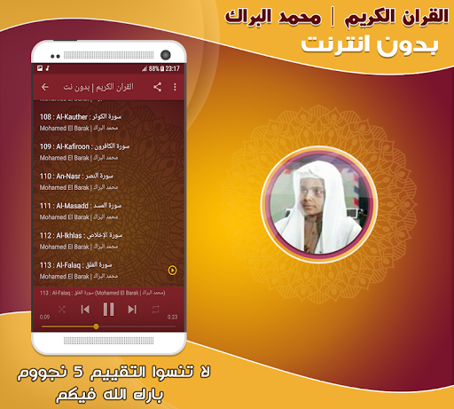 Recitations of the Noble Quran with the voice of the reciter Mohamed El Barak, a wonderful voice enjoy listening to it without the Internet