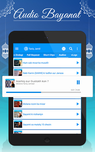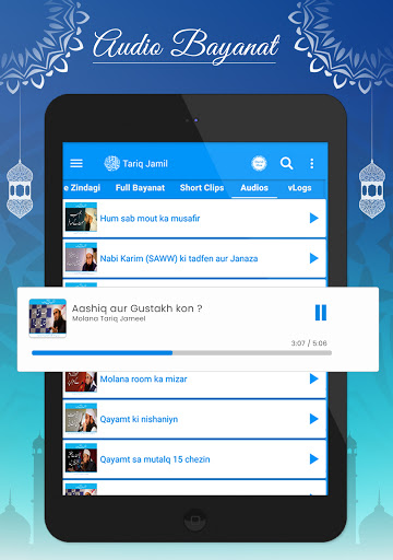 You can listen and watch molana tariq jameel lectures easily in high quality. The amazing feature of this Islamic app that you can share Islamic videos and lectures mp3 and bayans to others. Share your favorite Islamic bayans to family and friends. Share stories of Prophets and Sahaba’s and Allah’s command with everyone or on social sites.
