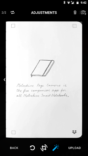 Moleskine Page Camera is the free companion app for all Moleskine Smart Notebooks. Use it to recognize your Moleskine notebook then digitize your page's artwork and text for use with cloud-based platforms such as Adobe Creative Cloud and Dropbox. Page Camera optimizes and transcribes your content to photo, vector, and text-based file formats.