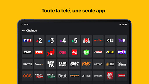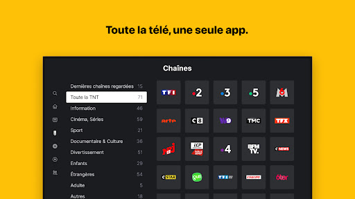 • LES CHAÎNES DE LA TNT EN DIRECT ET EN REPLAY* : France 2, France 3, France 5, Arte, C8, NRJ12, LCP-Public Sénat, France 4, BFM TV, CNews, CSTAR, L’Equipe, RMC Story, RMC Découverte, Chérie 25, France Info, la chaîne de l’INA, Brut, France 24, BFM Business, LCP 100%, Public Sénat.