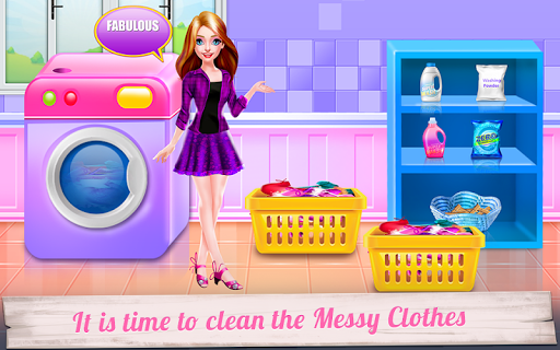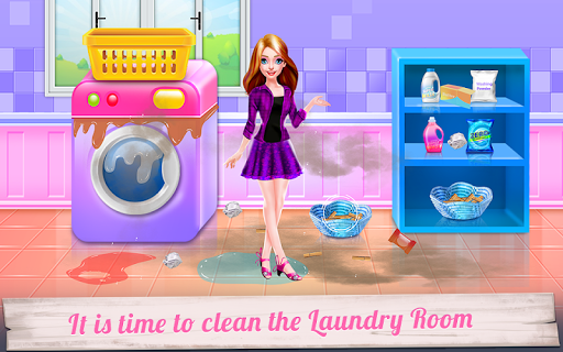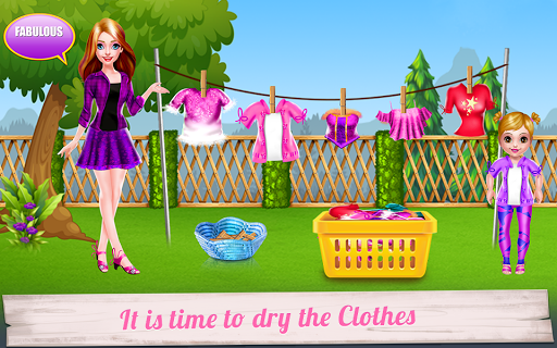 Spend a day with these lovely girls: a mother and her baby daughter and see how a good team they are. Besides being friends, they are also teammates in doing chores around the house. So, come along and play this cleaning game where you will find that there are more to do in a house than it seems. In this game, you will handle the laundry part, continuing with the laundry room cleaning and dressing up the girls. First, you will begin with the part where you clean the room. Use the given tools to accomplish this task and make sure the floor is spotless and the garbage is taken to the bin. Next comes the laundry phase and this is where you will be getting dirty clothes and place them in the washing machine. Add detergent and conditioner and wait until they are cleaned. Get them out to be dried and continue with the rest of the game with the ironing. Take each item clothing in part and use the iron to get them straight. All that remains is to dress them up in sweet outfits with cute playful accessories. Go crazy and add unique colors that will match their energic personality. You can make the mom look chic and also the baby girl. Have fun!