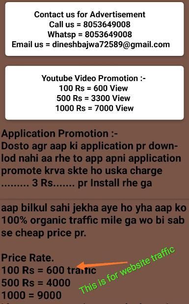 We offer you a special feature in our app. You can do advertise with us of your website, youtube channel & any other your business. For that just you have to contact with us and we will place your ad in our app.