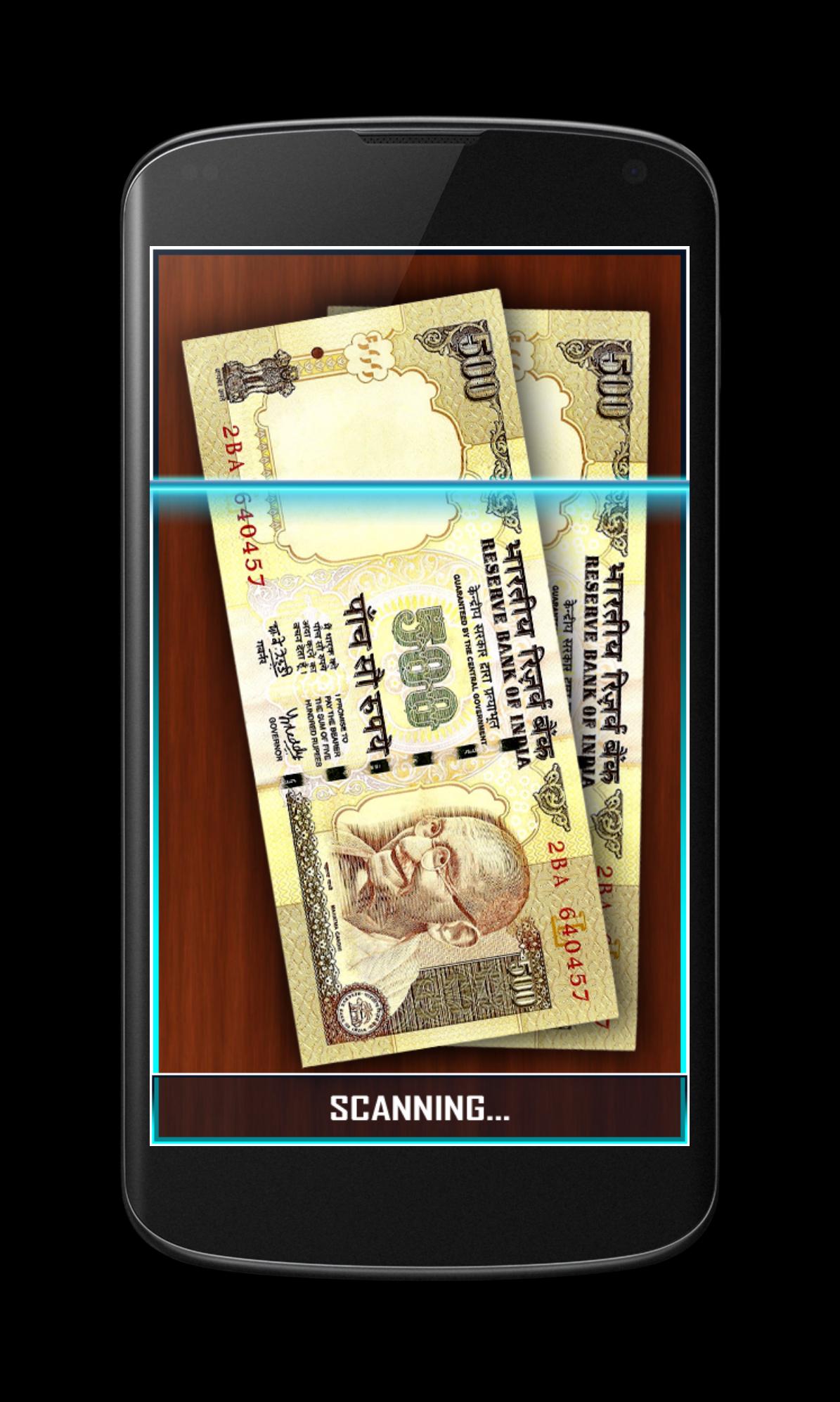 ► The app has a camera which shows ultra negative screen so that you can check the currency note properly.