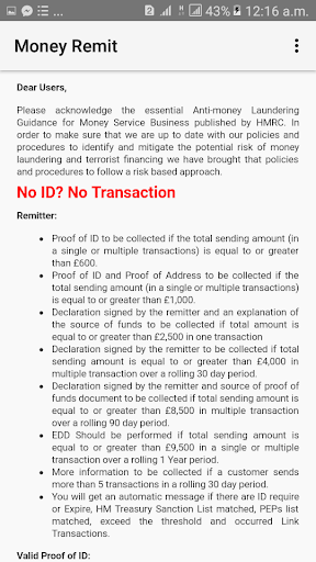 The essential Anti-money Laundering Guidance for Money Service Business published by HMRC. In order to make sure that we are up to date with our policies and procedures to identify and mitigate the potential risk of money laundering and terrorist financing we have brought that policies and procedures to follow a risk based approach.
