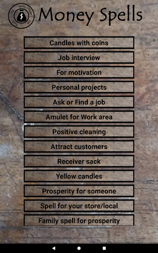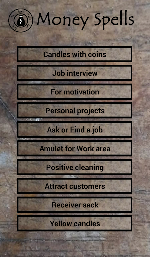 Application with 15 spells of money and work that will try to help us to attract money or improve our economic situation through spiritual channeling.