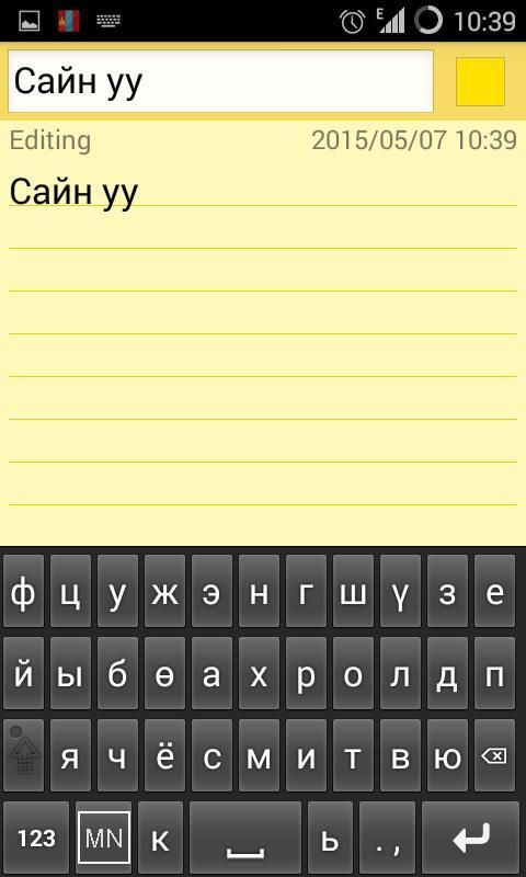3-рт Ямар нэгэн текст бичдэг програм дотроос текст оруулах товчлуураа сонгож идэвхжүүлнэ. Ийм цэс нэг бол текст бичиж буй талбар дээр удаан дарахад гарч ирнэ. (Input Method); Эсвэл текст бчичж байх үед утасны дээд талын мэдээллийн туузанд компьютерийн гар шиг дүрс харагддаг. Энэ нь тухай туузыг доошлуулахад сонгох цэс байгаа гэсэн үг болно. (Choose Input Method)