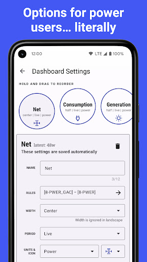 • Grid layout dashboard with support for historic items that show you your energy usage over a certain time period