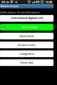 Coordinates of localization (of "controlled" smart phone) will be communicated exclusively to Gmail address specified as the "controller".