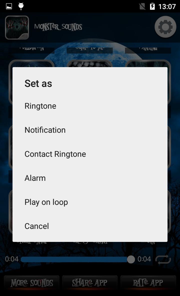 Screen to set the sounds as ringtone/notification/contact/alarm.