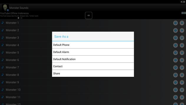 Do not forget that you can share Monster Sounds, use them as ringtones and notification, as well as alarm tone.