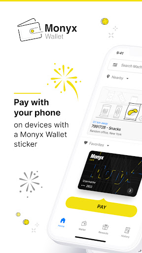 The Monyx Wallet app allows you to use your smartphone to buy products at your favorite vending machine quickly and easily! Receive special discounts and promotions on participating vending machines worldwide.