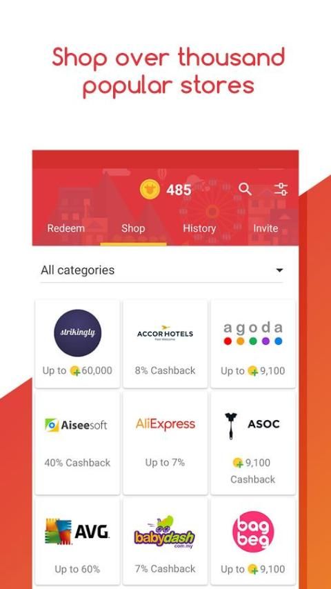 Able to shop online and earn cashback