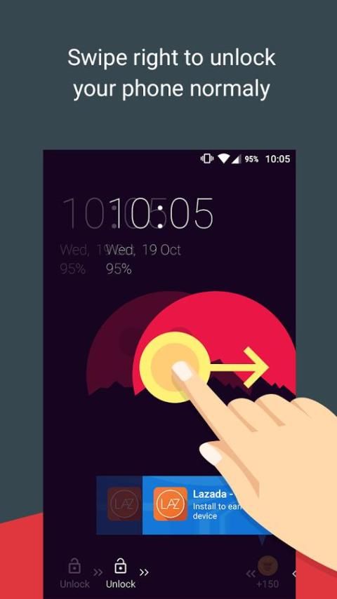 4) Swipe left to earn by checking out offers or swipe right to unlock your phone normally