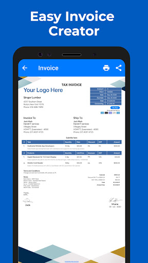 Here are some exclusive features of our invoice maker app that helps generate invoice simple & accurate. Use invoice templates to create professional invoices with our invoice maker free app.