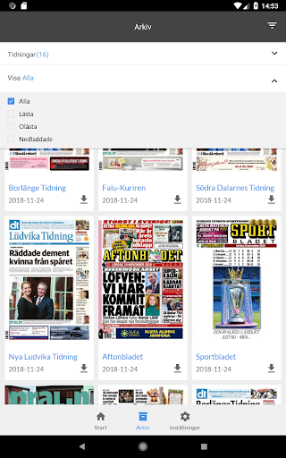 Sebagai pelanggan di Mora Tidning, Anda juga memiliki akses gratis ke e-magazine berikut di aplikasi Anda: Falu-Kuriren, Borlänge Tidning, Södra Dalarnes Tidning, New Dalarnes, New Dalarnes, New Ludvika Tidning, dan koran Avesta.