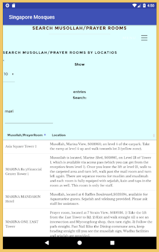 The Singapore Mosques covers Masjid (mosque), Surau/Mushalla, and prayer room/place in Singapore. This application comes with the map, list of mosque and prayer places and