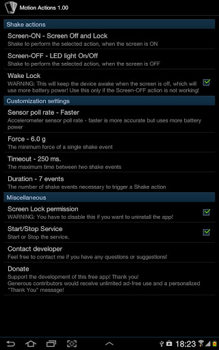 Small, innovative and very useful utility, allowing you to perform various actions using the motion sensor of your device.Users of Advanced Screen Control would recognize some of the functionality and would appreciate the cleaner UI and the additional features. This is a continuation of my efforts related to the motion sensor utilization.Used terms:"Shake event" means a registered motion of the device in accordance with the chosen settings. Please note that it may differ from a single shake of the device. A Shake action is triggered by a set number of registered Shake events.IMPORTANT: Please remove any other motion sensor apps before trying Proximity Actions, to avoid interference. If you are using ASC, disable the Shake actions.Key features:✔ Turn the screen off and lock the device;✔ Wake up the device; ✔ Toggle Auto-Rotation On/Off;✔ Change the screen orientation, without releasing the orientation lock (Android 3.0 and up);✔ Launch any app;✔ Toggle the LED light On/Off (if available).There are 2 configurable actions - one when screen is on and one when screen is off.Most informative and interesting user reviews would be featured here, in the app description!The app may use some battery power, depending on the settings. All settings which could affect the power consumption have a proper warning in the description.IMPORTANT: Developing apps for hardware features of Android devices is a really though job, as there are so many different devices with different hardware and software implementations. So I have a very important request for all of you - if you encounter any issues, please send me an email Development support:This app is developed by a single independent developer. If you like it and want to help my efforts - please give it a 5 star rating and share it with your friends!I would really like to achieve a perfect rating for this app, so if you don't feel like rating it with full 5 stars, please give a reason, so I could improve the app and deserve your 5 stars! I would very much appreciate it! Permissions:Most of the permissions are self-explanatory and are needed by the app's functionality.The INTERNET and the location permissions are needed by the ads - you would see ads very, very rarely and based on how often you actually use the app, but still - they do need those permissions. The ACCOUNTS permission is needed to grant ad-free use to people who support the development otherwise. No personal information is collected or sent whatsoever!