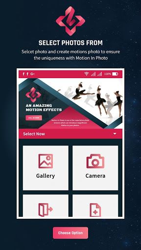 1. CHOOSE: A huge realistic collection of new themes with motion effects. User can choose motion and create a motion effects. We also release to our users, if they want they can customize their photo using their favorite motion effects.