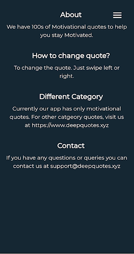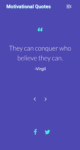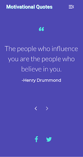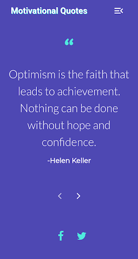 Motivational Quotes daily app has 100s of motivation quotes in collection and you can can one of it and share directly to facebook and twitter. Stay Motivated.