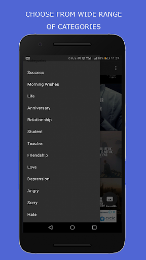 - Many different categories of quotes. eg. LOVE, STUDENT, DEPRESSION, etc.