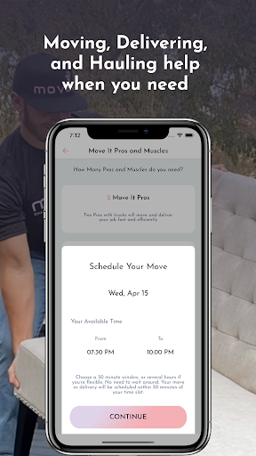 Our in-app and online technology makes booking very easy. Request a Move It Pro and/or Muscle in less than a minute.