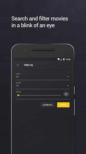 is a movie browser for all the available movies provided by the YTS (also called YIFY) api. Navigate through the latest uploaded movies or swipe to the most popular movies tab to watch best movies of all time. Add your movies to your library to keep track of them.