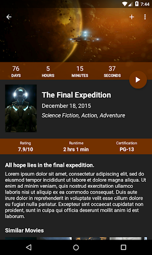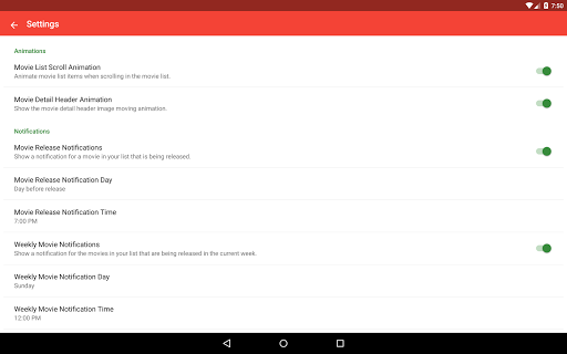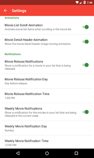 The live countdown timer makes it easy to see the time remaining for a movie's first day. The countdown timer shows the days, hours, minutes, and seconds that are left until the movie is released. But what's the purpose of a countdown timer without notifications? With the movie release and movie weekly notifications you can get a notification when a movie countdown timer reaches zero and a weekly notification to show a list of movies that are opening in the week! You can also set the notification any number of days in advance!