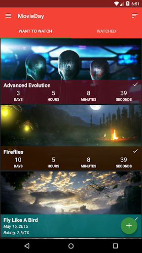 MovieDay lets you easily add an unlimited amount of movies to your "Want To Watch" and "Watched" lists! Plus it will automatically show a countdown timer for a movie that hasn't been released. The countdown timer is also visible on every list for every movie that is coming out.