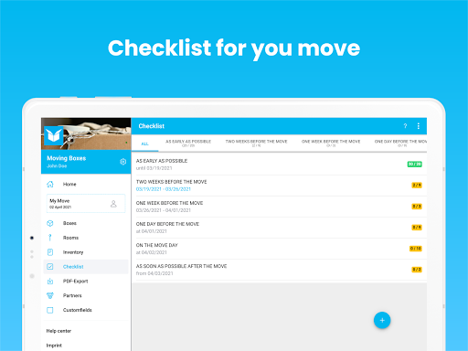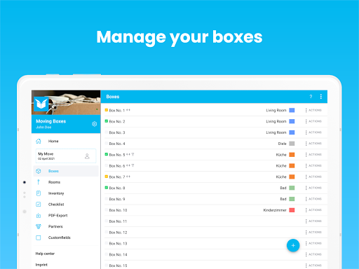 - "Where to go !?" - A color code and printable labels for the boxes help you and your helpers on the move day in the assignment of your belongings.