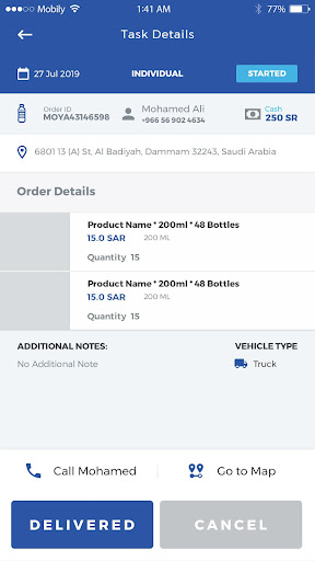 MoyaApp driver, which responsible to get all request from customers by supervisor and assign them to the drivers to deliver the water to customers.