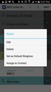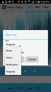 ✓After saving the trimmed mp3 u will get options for using the trimmed tone as alarm tone,ringtone,notification,assign to contact and option for opening the output folder.