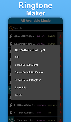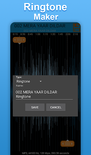 MP3 Cutter and Ringtone Maker application helps you cut a favorite part of a audio song, a music file. You can use the cut result as ringtone, alarm, notification tone or a music song.