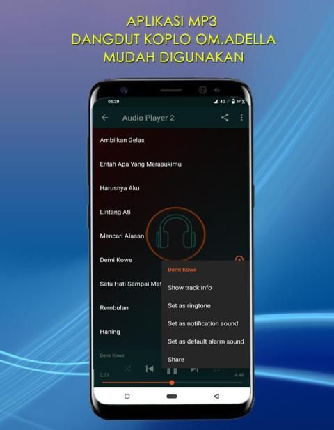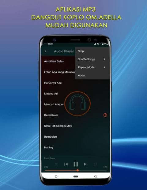 Applications Mp3 Dangdut Koplo OM Adella. Is a music orchestra with dangdut koplre genre. Which is presented with a good arrangement and good to listen to. With good quality audio and clear not shrill (recommended using handsheat). There are many song choice titles, you can play according to your taste. To listen to this mp3 application your device must be CONNECTED to the internet. You can turn this song into ringtones on your mobile, by not reducing the quality of the song and sharing it through social media.