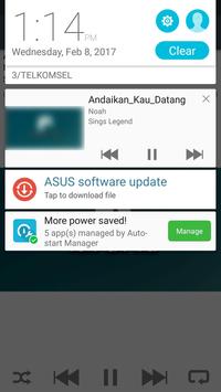 * Notification STATUS support: display album artwork, title and artist, play/pause, skip forward and stop CONTROLS in notification status.