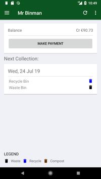 The Mr Binman app allows Mr Binman customers to view upcoming bin collections, view collection and payment history, get notified about upcoming collections and make payments to their account.