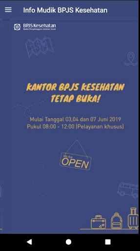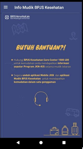 BPJS Health Homecoming Application is een applicatie die is opgebouwd door BPJS Health als een medium voor informatie voor JKN -deelnemers en openbare mensen tijdens het reizen thuiskomst.Via deze toepassing hebben deelnemers toegang tot verschillende informatie over de BPJS Health Homecoming Post die verspreid zijn in verschillende steden in Indonesië, zodat deelnemers de locatie van de dichtstbijzijnde gezondheidsfaciliteiten en verschillende belangrijke locaties kunnen ontdekken tijdens de thuiskomstreis.