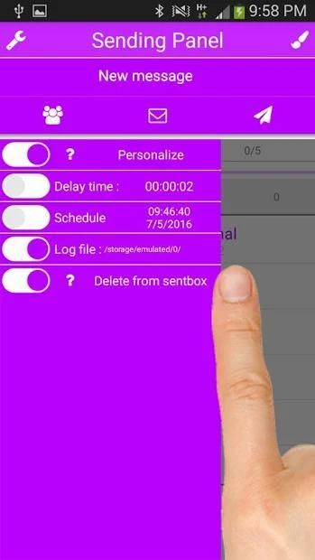 ✔ Background service , keep working with other applications while MSMS sending messages.