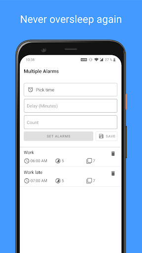 Have you ever overslept because of shutting off your alarm instead of putting it on snooze? This is not going to happen anymore with Multiple Alarms!