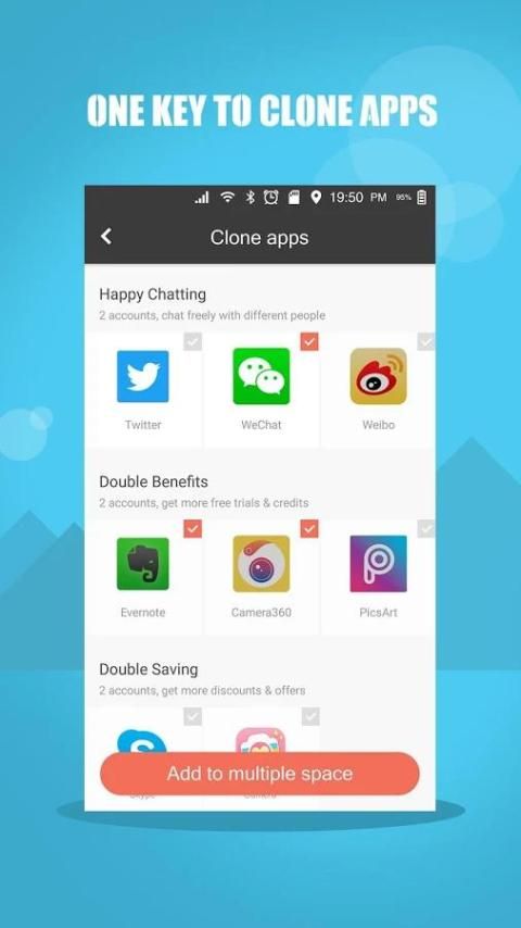 This is a realization of multiple accounts at the same time online applications. The user through the software can login multiple accounts, whether the game account number or social accounts, receives the message, data are independent and without interference. In addition, multiple space will also protect the privacy of users, to ensure the safety, let users can use the software.